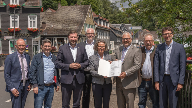 Stellvertretend für das gesamte 813 Quadratkilometer große Wuppergebiet war die Ministerin mit dem Wupperverband und den Stadtspitzen Wuppertals und Solingens in Wuppertal-Beyenburg und Solingen-Burg vor Ort.